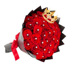 Price: $137.0025 Red Roses Ramo Buchon with Crown & Diamonds